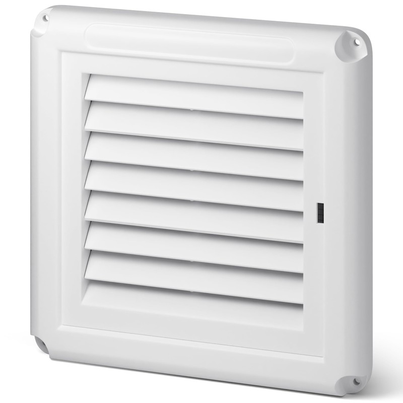 Adair 100mm (4 Inch) Square Vent Cover - White 155mm x 155mm External Louvered Grille with Mesh for Bathroom, Kitchen, Loft, Extractor Fans and Air Ducts – Wall & Ceiling Ventilation Solution