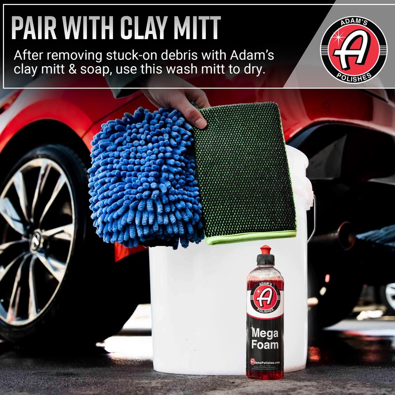 Adam's Chenille Car Wash Mitt - Premium Soft Microfiber Washing Glove for Car Cleaning & Detailing, Safe, Scratch-Free for Auto, Truck, RV, Motorcycle & More (Blue, 2pk)