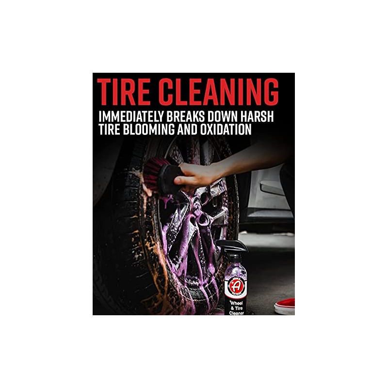 •  EXTEND YOUR TIRE DRESSINGS LIFE - Adam's Wheel & Tire Cleaner is a detailing essential for any user, from rookie to professional. When investing in premium protective options, high foaming soaps, and ultra-premium microfiber towels, your vehicle's shoes need to be kept clean to not take away from the rest of the vehicle. If you choose not to clean your tires, your tire dressings have no chance of sticking around. Clean your tires before with Wheel & Tire Cleaner to maximize your tire shine.
