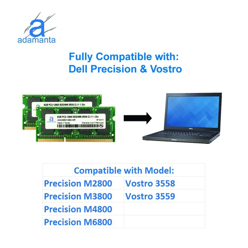 Adamanta 16GB (2x8GB) Compatible for Dell Latitude E7440, E7240, E6540, E6440, E5540, E5440 DDR3L 1600Mhz PC3L-12800 SODIMM 2Rx8 CL11 1.35v Notebook Laptop Memory RAM Upgrade PN SNPN2M64C/8G