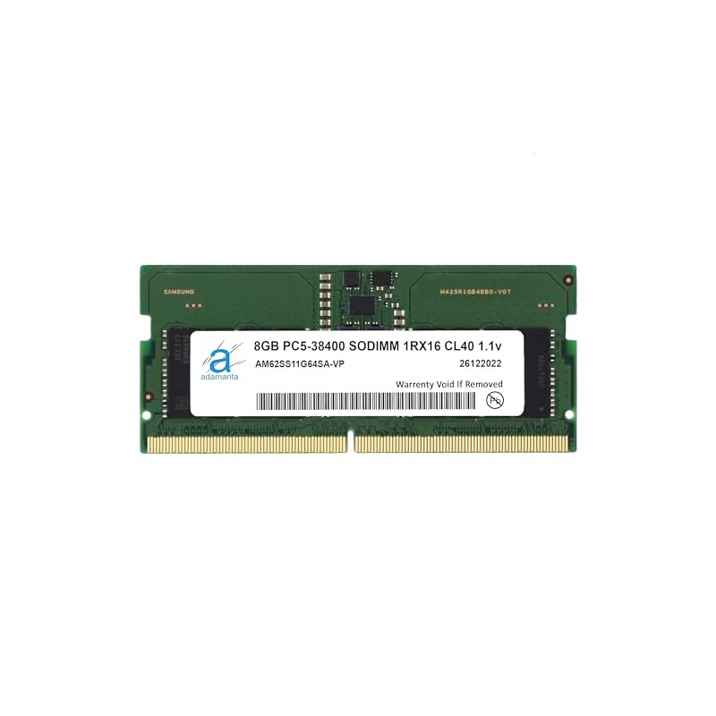 - 8GB ( 8GBx1 ) DDR5 4800 MHz Non-Parity/Non-ECC Unbuffered SODIMM DRAM NoteBook Memory 262 pin Single Rank Module.