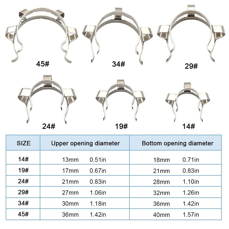 Joint clips can be used to firmly fix glassware joints to avoid costly breakage due to joints separation during the reaction process. These keck clips are great to fix distillation kits, condensers and flasks etc.