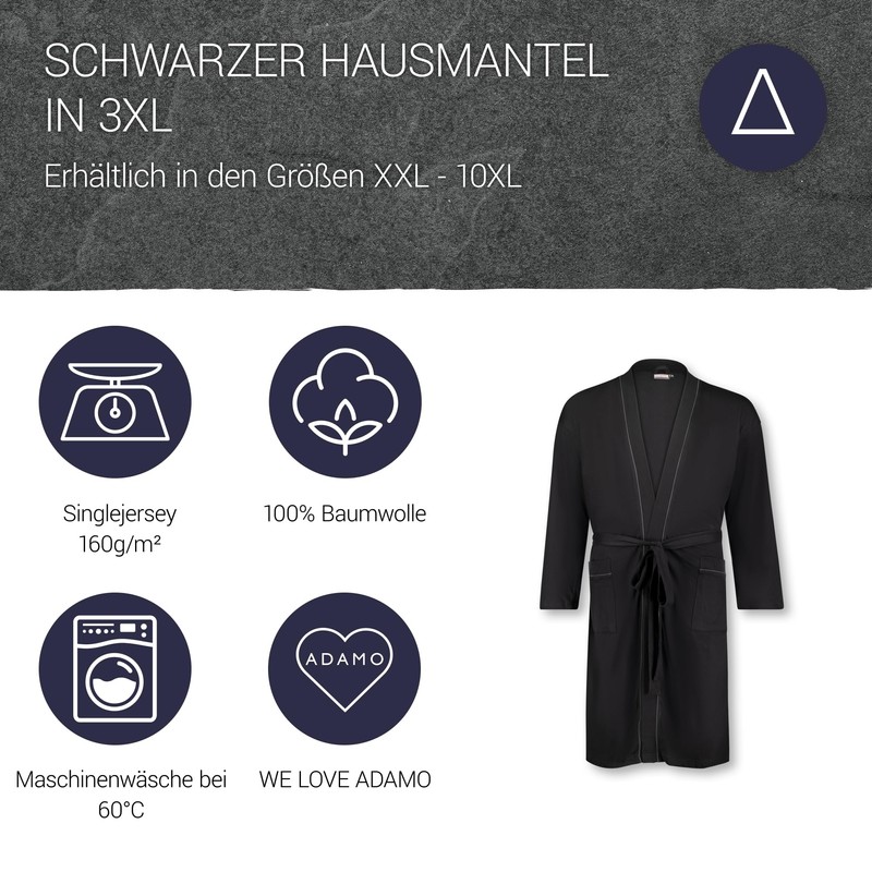 ADAMO Men's House Coat in Black up to Plus Size 10XL, black