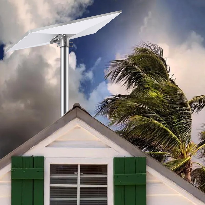 - Hecho de acero aleado, el soporte Starlink puede soportar cualquier clima adverso y sigue siendo indestructible incluso en huracanes, tratamiento de galvanoplastia superficial para evitar el óxido y se puede utilizar en entornos marinos costeros.