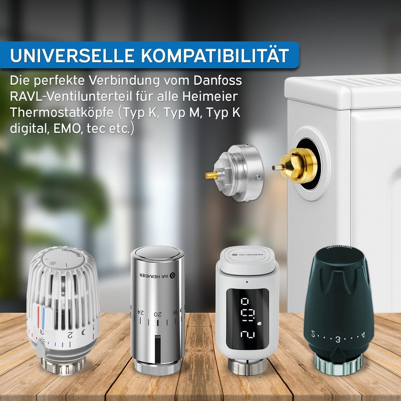 - Ideal for retrofitting: perfect solution for modernising or replacing existing radiator valves, especially for Danfoss RAVL systems in residential and commercial buildings.