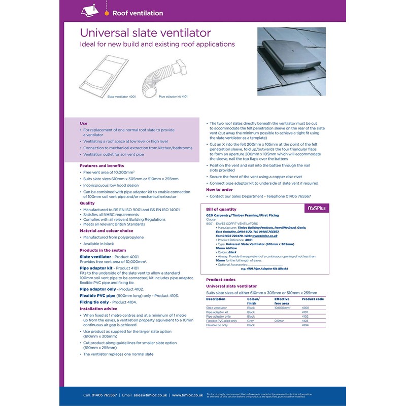 • Adapter kit used in conjunction with Timloc slate tile vents.