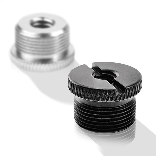 - Product Included: 2 sizes 1/4" to 5/8" conversion screws (black + silver), outer screws are 5/8", inner screws are 1/4". These screws are suitable for most microphone stands and help you solve the problem of damage or lost parts. Height about 13mm, lightweight, sturdy and durable, stable and easy to install and remove by hand