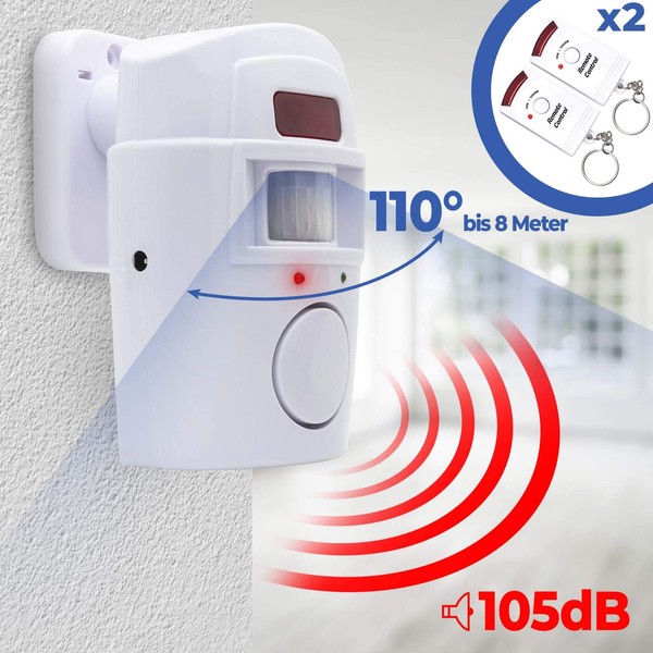 - Alarm System reacts in an angle of 110 ° to movement for the Überwachungsbereich