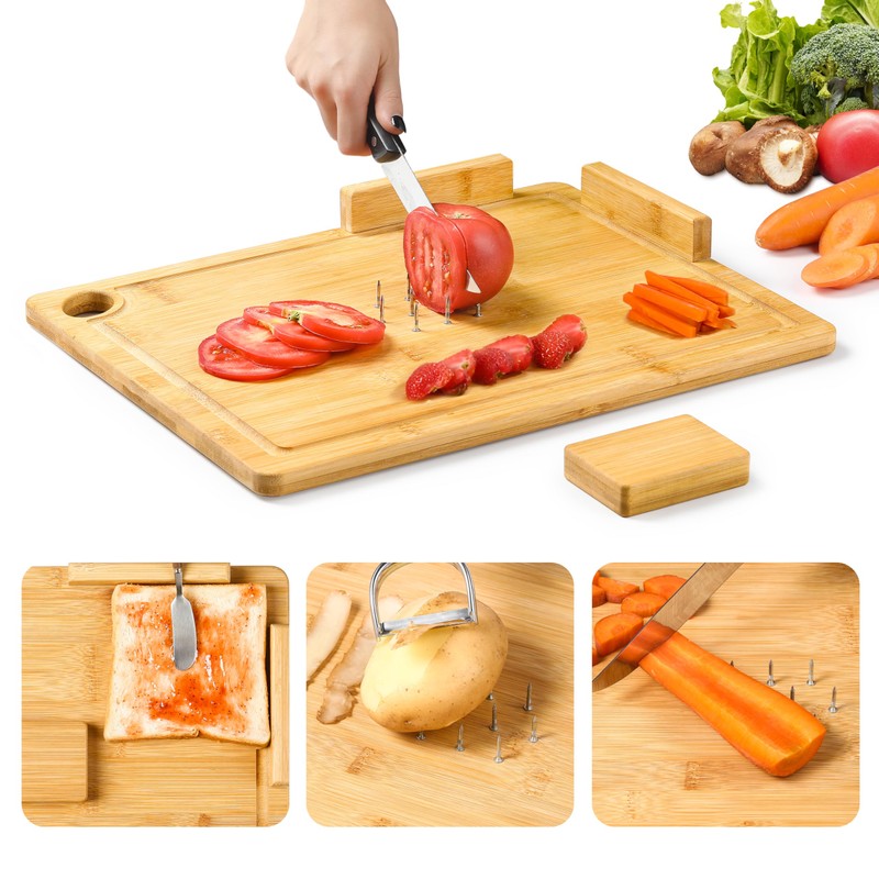 - Upgraded Adaptive Cutting Board – This one handed cutting board is designed with 10 food-grade stainless steel spikes, offering a larger fixation area than standard boards to securely hold vegetables, fruits, or meats for safer peeling and chopping