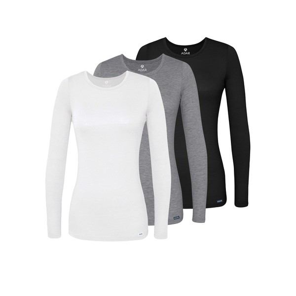 Adar Uniforms Underscrubs for Women 3 Pack, Long Sleeve Underscrub Comfort Tee, 2903, Black/Dark Marl Gray/White, L
