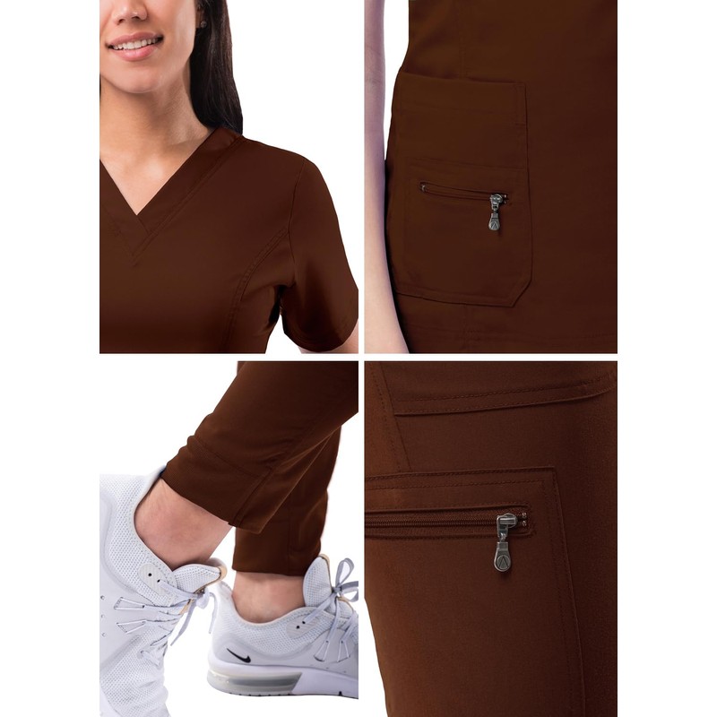 Adar Uniforms Pro Flawless Plus Scrub Set For Women - Elevated V-Neck Top & Jogger Pants - P9600 - Coffee - S