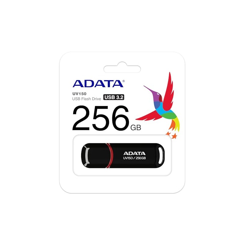 ADATA AUV150-256G-RBK USB Flash Drive, 256 GB USB 3.2 (Gen1) Compatible with Cap, Black