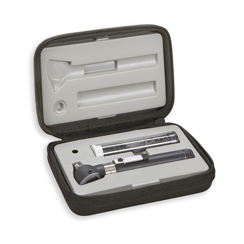 - Otoscope in hard case measures 7 1/4” x 4 1/2” x 1 1/2”, weighs.78 lbs