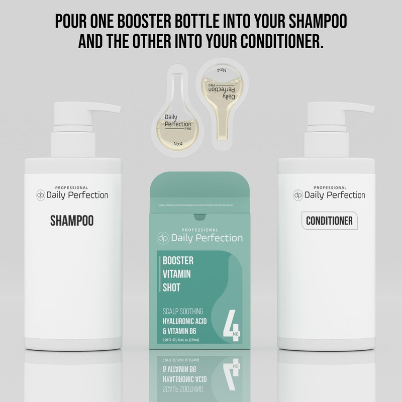 - A vitamin booster shot is a concentrated formula that enhances existing hair care products with targeted benefits. Add it to your routine to address specific concerns like damage or lack of shine. This customizable addition elevates your daily hair care, offering a tailored solution for optimal results based on your unique needs.
