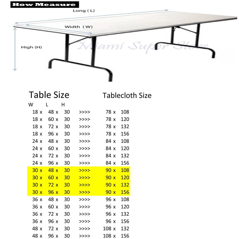 • Designed to Fit Table Sizes: 18” W x 72” L x 30” H