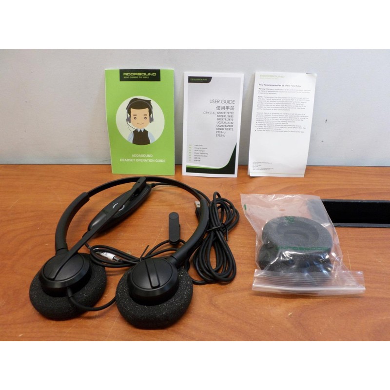 Addasound Crystal SR2732 Dual Ear - Stereo - Noise Cancelling USB Black - New