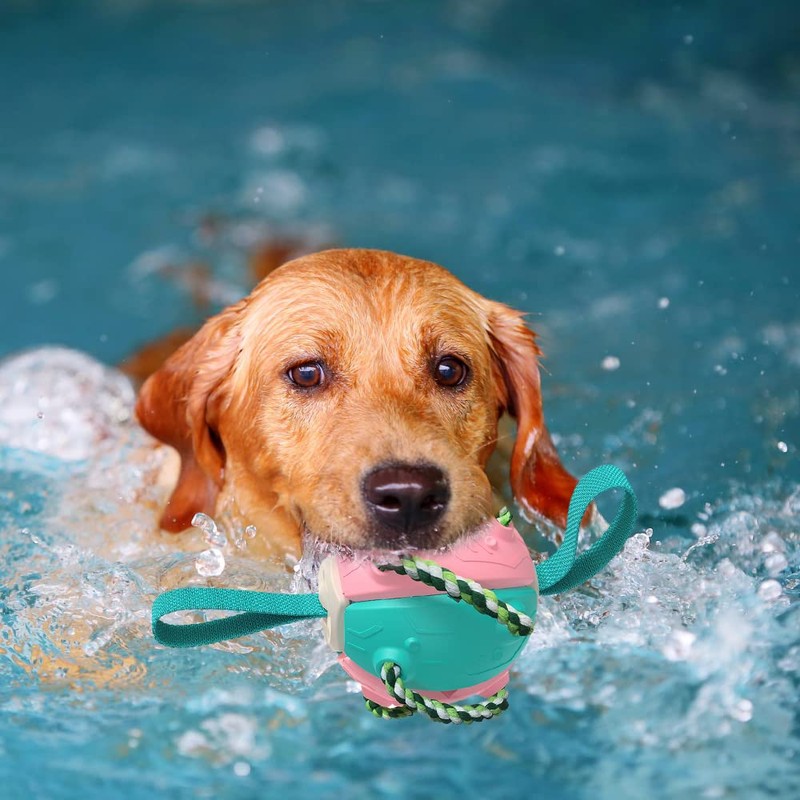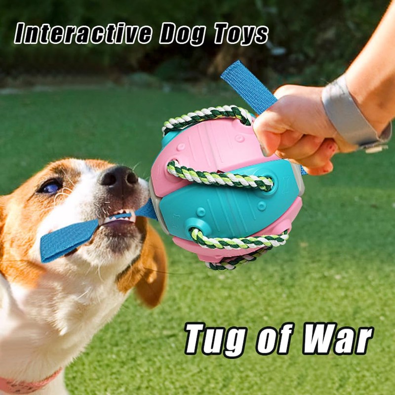 - 【Multi-purpose Interactive Dog Toys】- You can flatten it into a flying saucer and throw out, or kick it out as a football ball and let your dog bring it back with mouth, or use it for interactive water play to enhance bonding with your pet while your dog swim. It can also be used as a tug of war toy, where you and your dog each hold a piece of nylon braided rope and have a tug of war with your pet, enhancing mutual understanding and improving your dog's physical fitness.