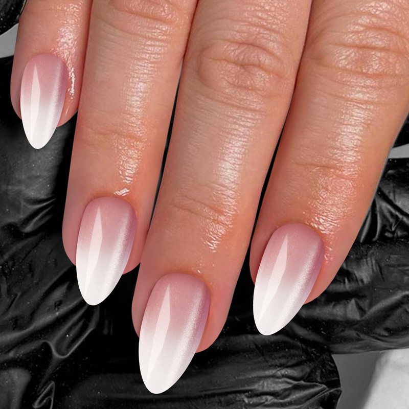 Transform your nails in minutes with these ombre press on nails, designed with a stunning cat eye and pink white gradient effect. Perfect for daily wear, special occasions, or a quick style update.