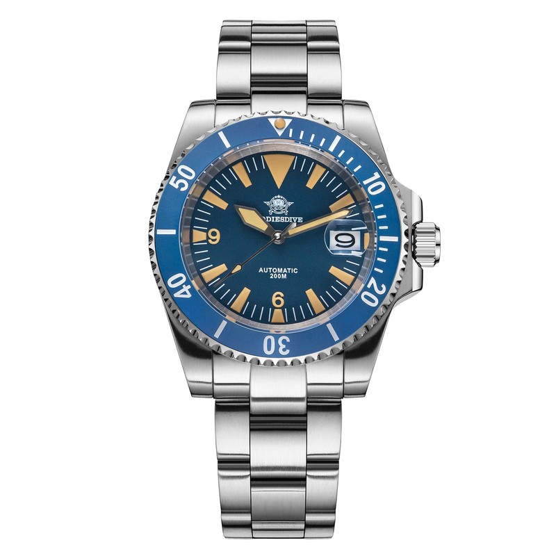 ADDIESDIVE Retro Military Style Automatic Dive Watch Waterproof 200 M NH35A Synthetic Sapphire Vintage Blue Dial