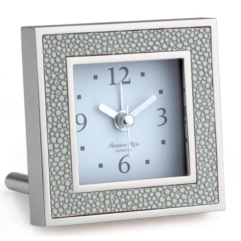 Addison Ross Battery Alarm Clock – Silent Sweep – Compact & Stylish – Alarm Clock Bedside – Velvet-Backed Design/Home & Office Decor – Grey Shagreen