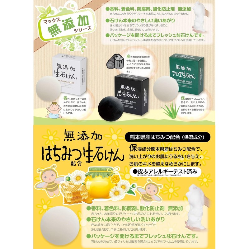 - (Japanese soap with no added fragrance, coloring, preservatives, and antioxidants) This natural soap is gentle on the skin, so it can be used not only for body but also as a face soap. The fine foam creates a clean and gentle wash without feeling stiff. The soap is made directly from vegetable oil, so it contains a large amount of glycerin, a natural moisturizing ingredient to moisturize your skin after washing