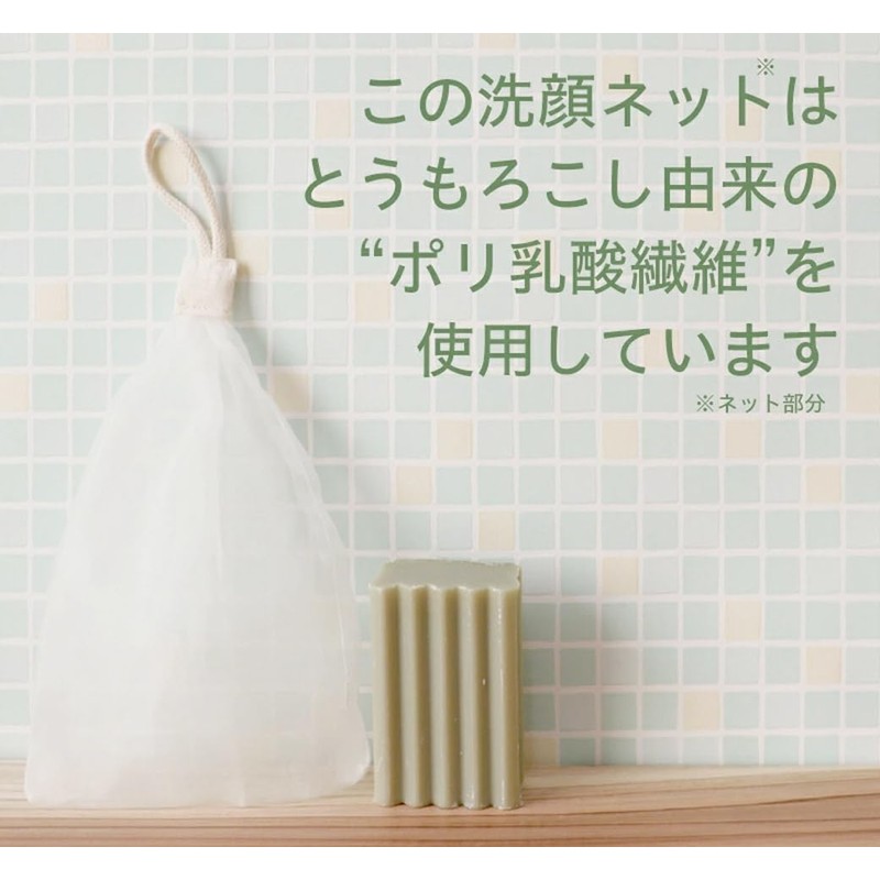 - Includes a foam net made of polylactic acid fiber derived from corn: The narrow-spaced mesh creates a dense foam close to the skin texture. Polylactic acid fibers are plant-derived ingredients with low CO2 emissions, low combustion heat, no toxic gas, and biodegradable in soil