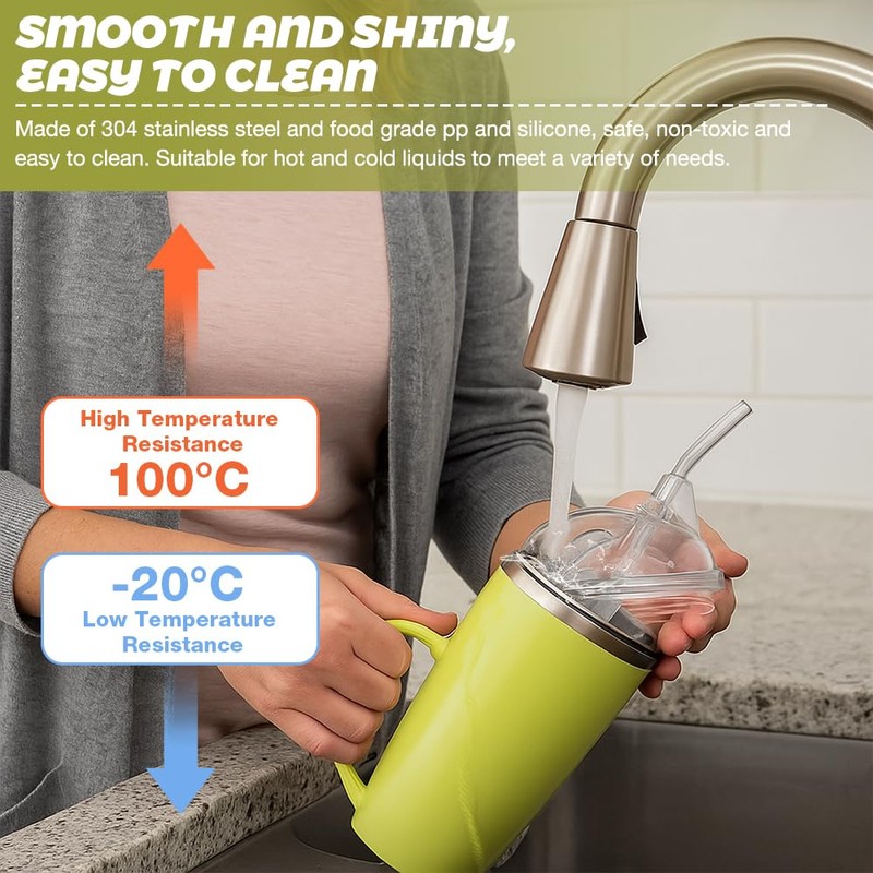- Mutli-Function: When drinking liquid, adult sippy cup with hose connector lid, easy to observe, the soft straw can be bent at will, easy to disassemble; when drinking liquid, it with liquid head lid, leakage-proof; it with the ordinary lid, as a daily use of insulation cups, anti-scalding and drop-proof