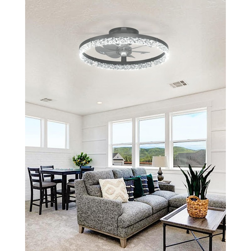 addlon Ceiling Fans with Lights and Remote, 20'' Low Profile Ceiling Fans, 3000-6000K Dimmable Modern Flush Mount LED Fan Light, Fandelier Ceiling Fan for Bedroom, Kitchen, Living Room, Black