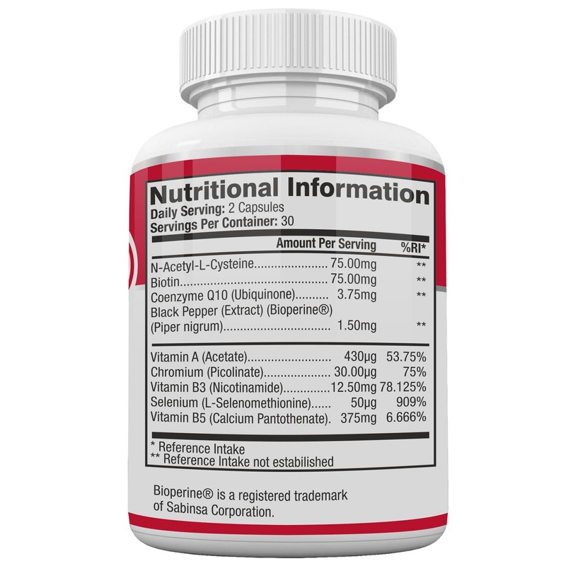 - Powerful clear skin supplements: this drug free formula is designed for men and women looking to decrease redness and reduce pore size in a natural way using Vitamin B5, Vitamin A, NAC, and selenium. Contains no antibiotics and doesn't cause any harsh side effects.