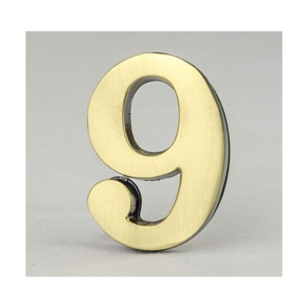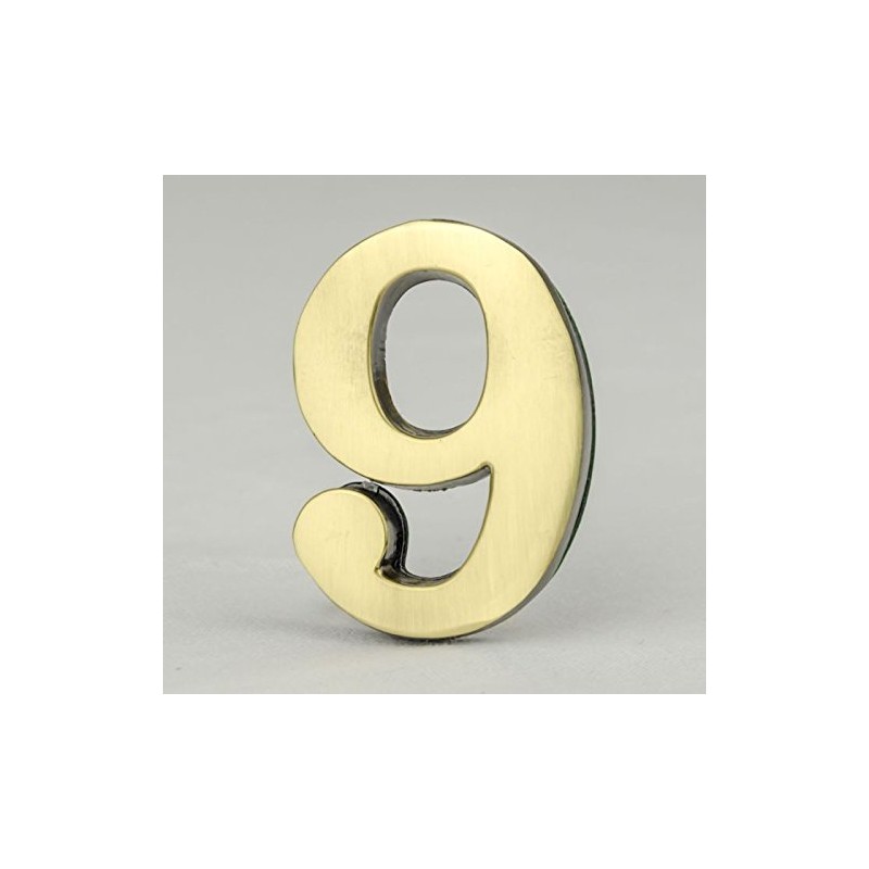 Address Number 9-2 Inch Solid Adhesive Brass Numbers for House, Door, Address Plaque, Mailbox | Satin Metallic Surfaces