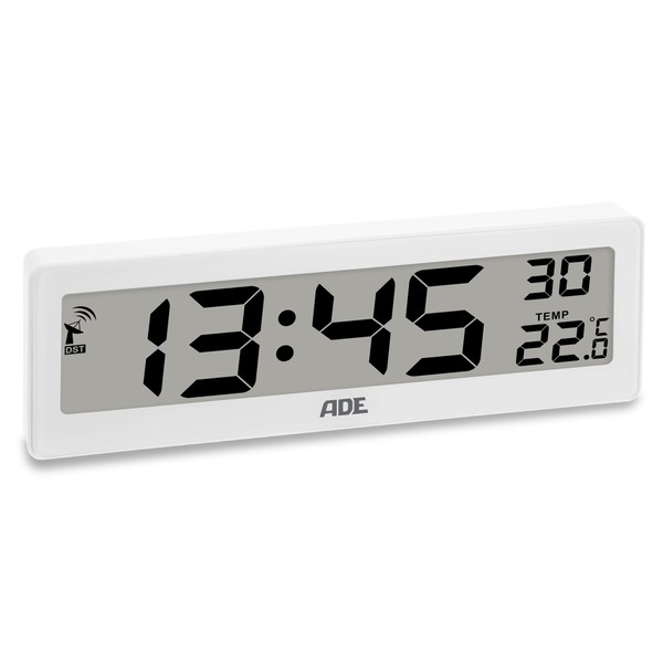 ADE Digital Radio-Controlled Clock Living Room with Temperature Display, Very Large Numbers, Easy to Read Display, White