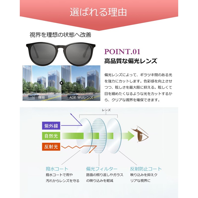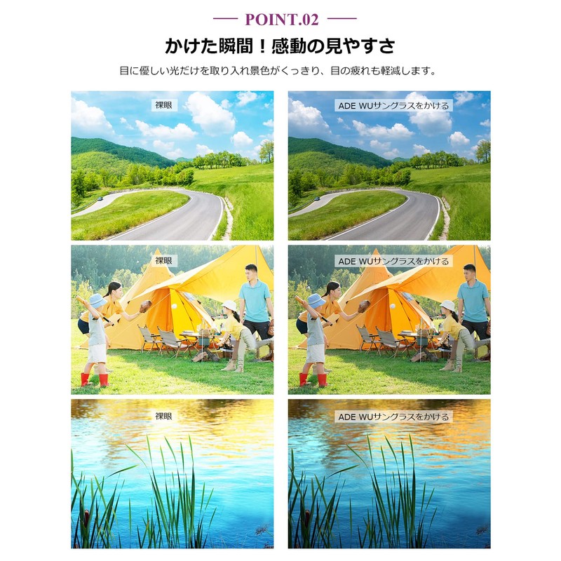 - Polarized lenses + UV400: Remove irregularly reflected light and allow only natural light to pass through and clear your view. It reduces glare on snow and water, and is also suitable for outdoor activities such as skiing and fishing. It is also effective for the reflection of the asphalt or reflecting glass in the building street, so you can use it when driving your car, and it will lead to a comfortable ride