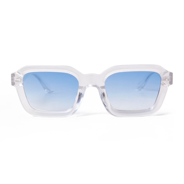 ADE WU Trendy Square Sunglasses for Women Men, Retro 70s 80s Stylish Square Frame Tinted Sun Glasses(Clear Frame/Blue Gradient Lens)