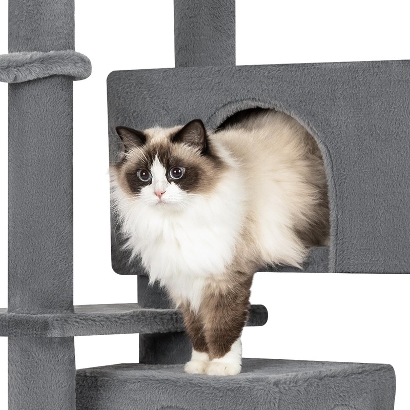 - IDEAL FOR MULTI-CAT HOUSEHOLDS: With top perches, hammock and roomy cat caves, this cat tree offers multiple comfortable spots for cats to relax, making it perfect for multi-cat homes where everyone deserves their own space.