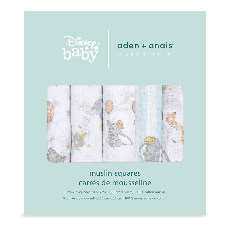 aden + anais essentials 100% Cotton Muslin Musy Squares, Multi-use Baby Cloths for Girls & Boys, 60x60cm, Ideal Newborn & Infant Nursing Set, Perfect Shower Gifts, 5 Pack, dumbo new heights