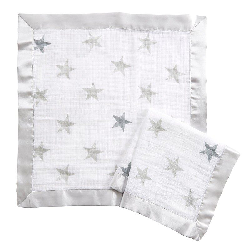 aden + anais essentials Issie Security Blanket, Super Soft 100% Cotton Muslin, Satin Trim, 2 pack, dusty