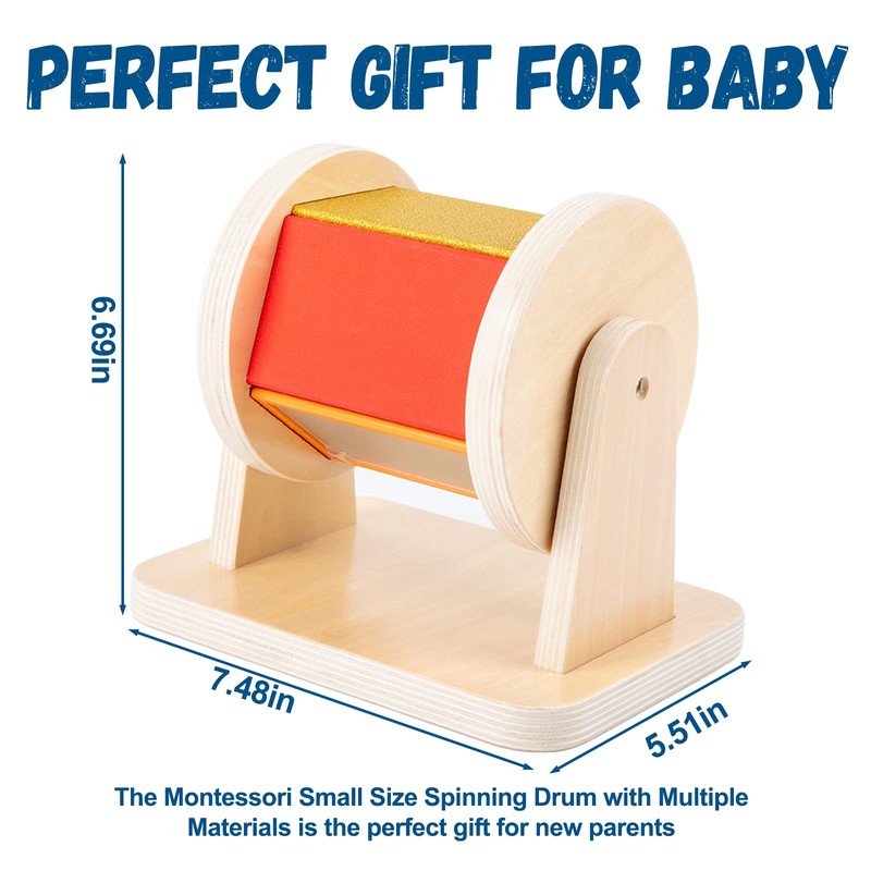 - đăPerfect Gift for Children and New ParentsăThe Montessori Small Size Spinning Drum with Multiple Materials is the perfect gift for new parents, baby showers, or any child who loves to explore and learn through play.