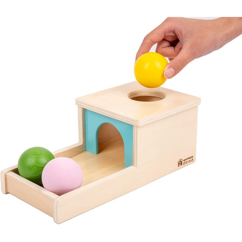 - đ±ăPromotes Cognitive Developmentă: Montessori object permanent box baby with tray and three balls promotes the cognitive development of toddlers aged 6-12 months.By illustrating the concept of object permanence, it helps children understand that objects continue to exist even when they are out of sight. The three balls have a diameter of about 1.77 inches.
