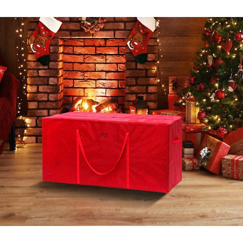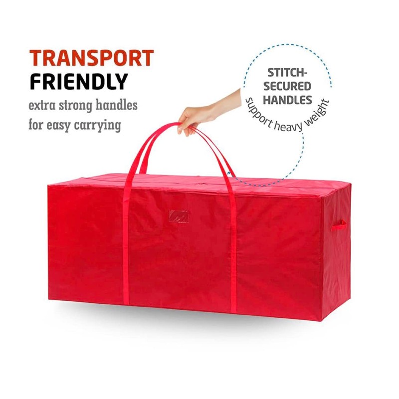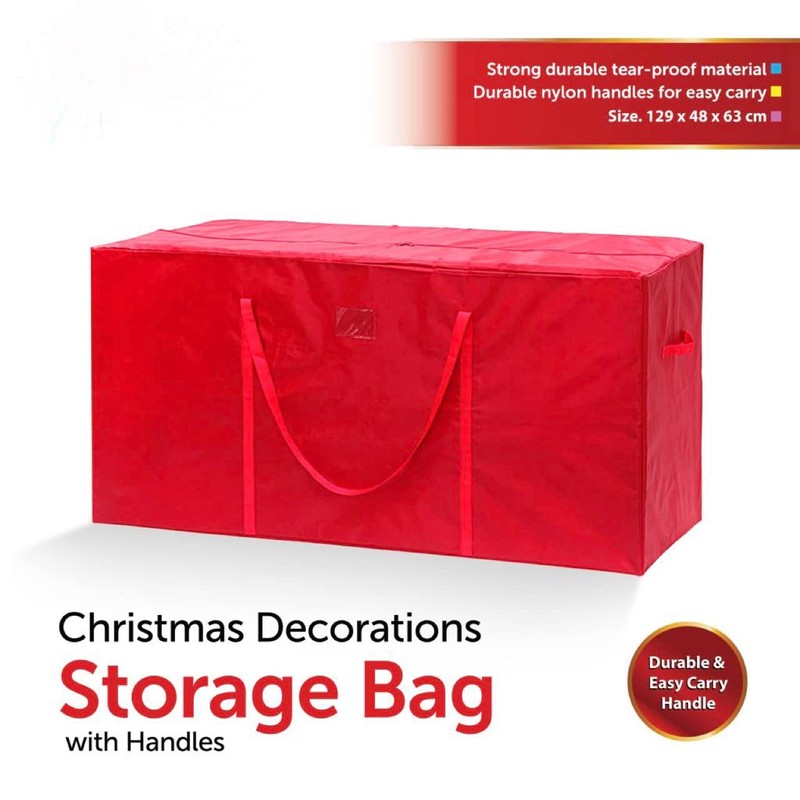 - MADE DURABLE MATERIAL - Made from high quality polyethylene U.V. stabilised for longer life. Strong durable tear-proof material. Durable nylon handles for easy carry. Artificial Christmas tree & decorations storage bag