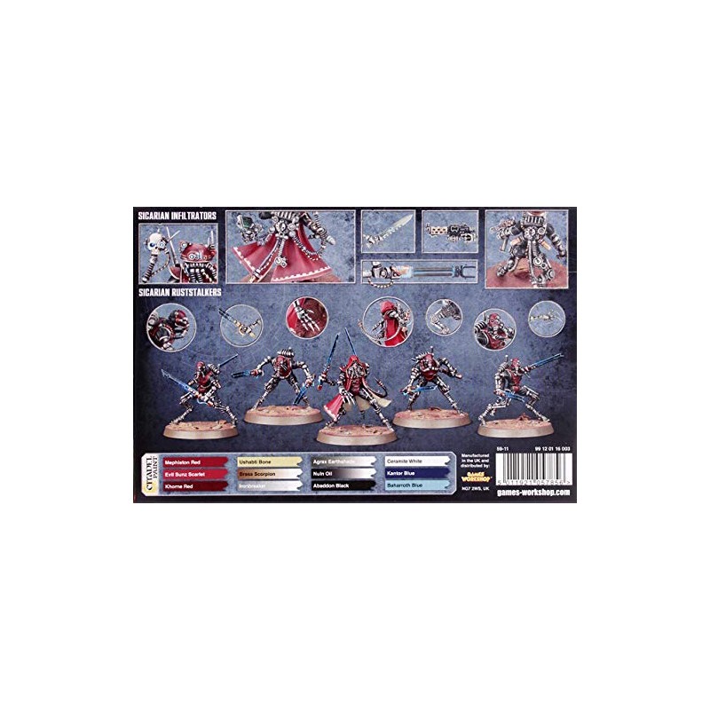 - この117コンポーネントのマルチパーツプラスチックキットには、シカリアのラストストーカー5台(プリセプス1台を含む)またはシカリアの侵入者5台のいずれかを作るために必要なすべての部品が含まれており、40mmが5台付属しています。