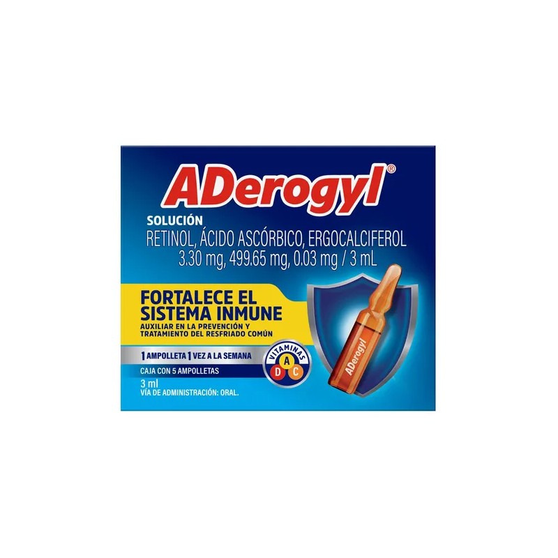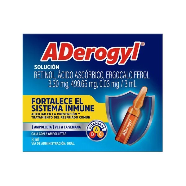 ADerogyl Multivitamínico 5 Ampolletas de 3 ml. Con Vitaminas A, C y D, Fortalece el Sistema Inmune y Refuerza tus Defensas
