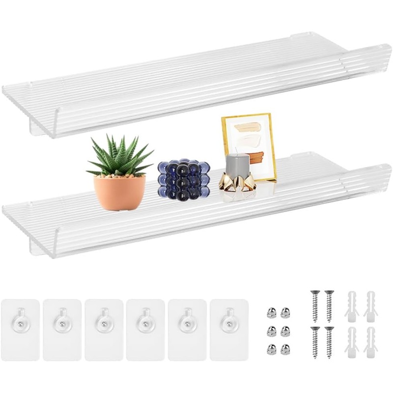 ADERTOS Pack of 2 Transparent Acrylic Wall Shelves Wall Heavy Duty Bookshelf ...