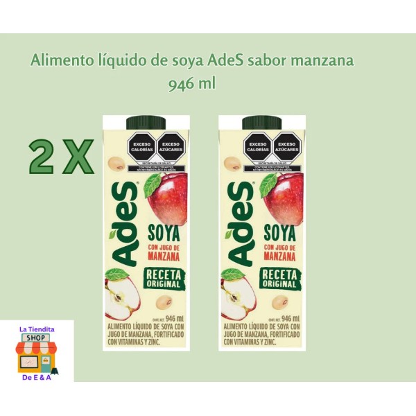 2 X Alimento líquido de soya AdeS sabor manzana 946 ml