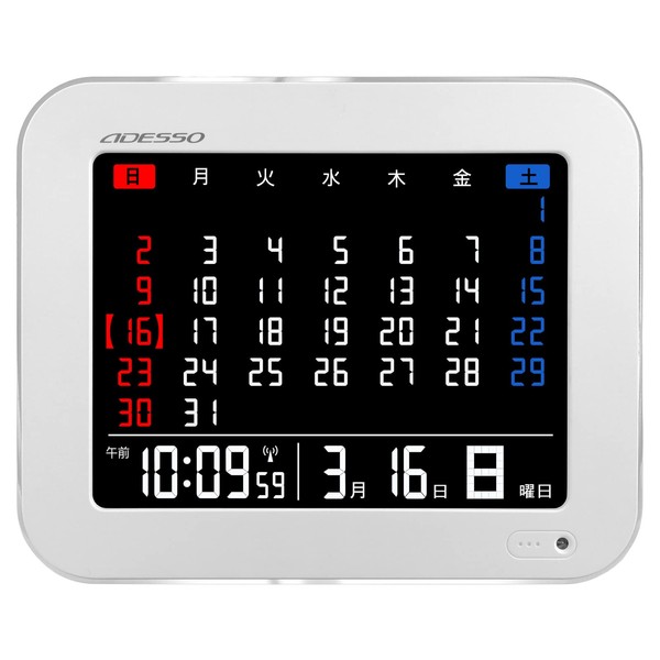 ADESSO AK-929 Table Clock, Radio Clock, White, Digital, Monthly Calendar, Clock, Can be Used as a Left Place