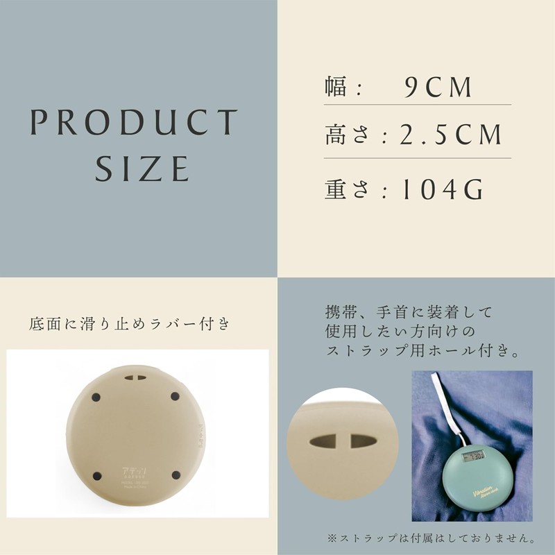 ADESSO Alarm Clock, Vibration Type, BB-2000, Vibration Alarm Clock, Powerful Vibration, Backlight, Cute, Snooze Function, Vibration, USB-C Charging, Under the Pillow (Soft Beige)