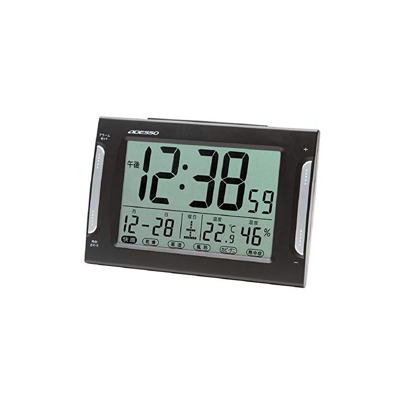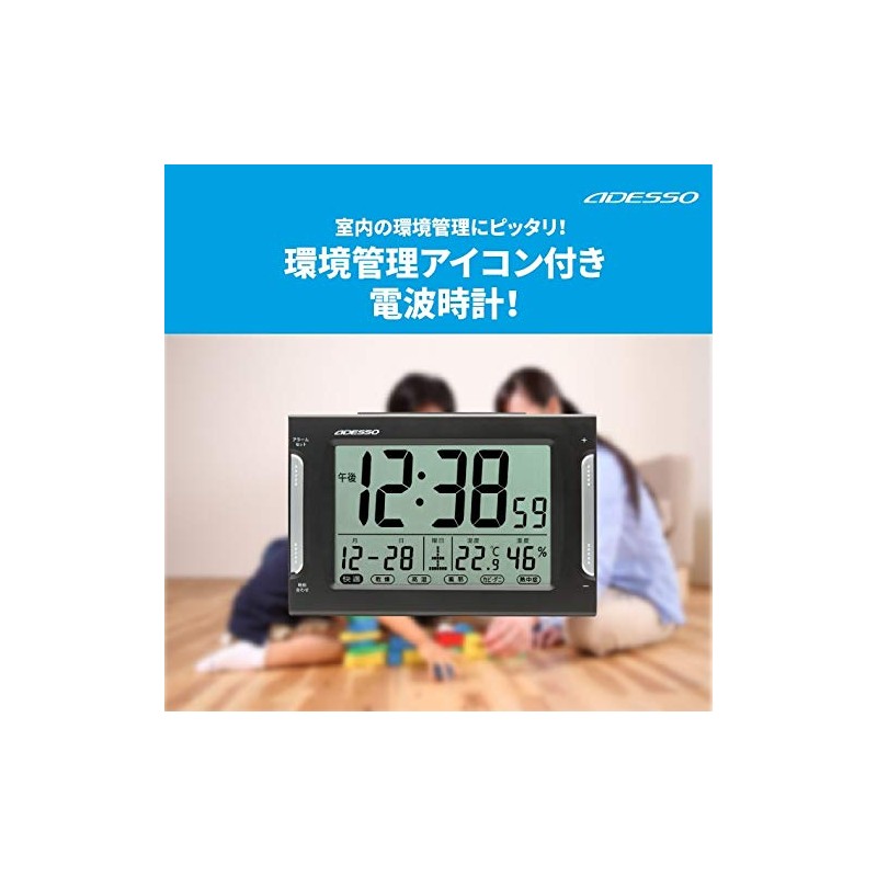 ADESSO(アデッソ) 置き時計 電波 デジタル ダブルアラーム 電波時計 注意報 温度 湿度 曜日 日付表示 ブラック DA-33