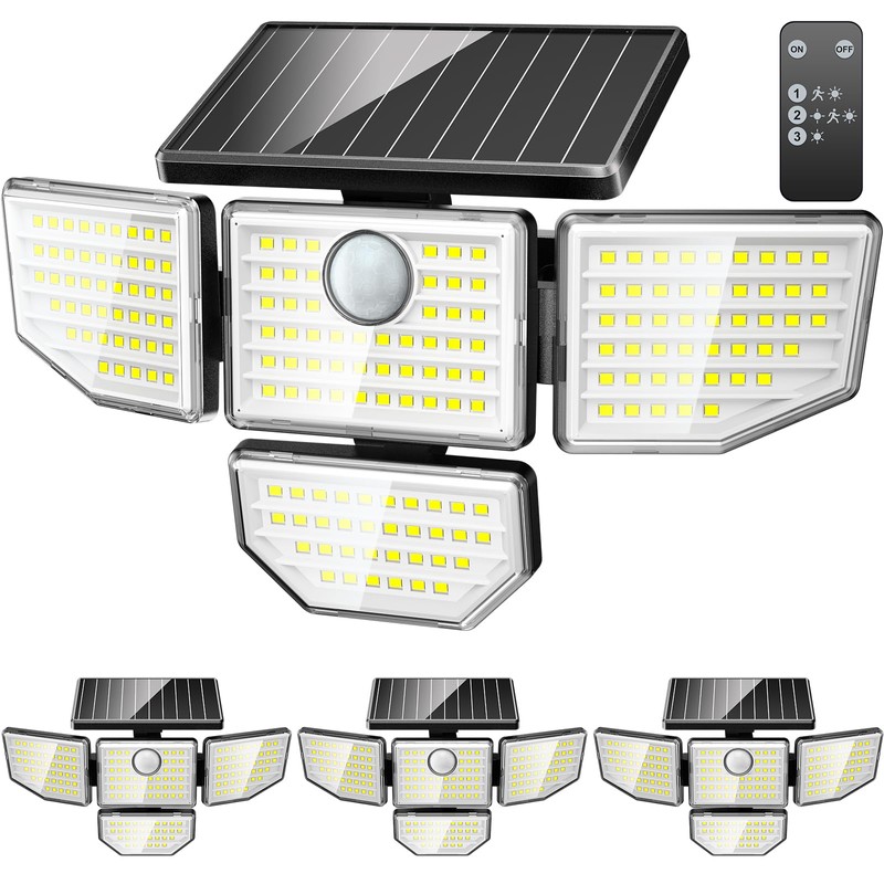 Adewalk Outdor Security Solar Light -4Pack 188 LED Solar Motion Sensor Light, IP65 Waterproof Powered Light for Outsidt Home Darkroom Backyard
