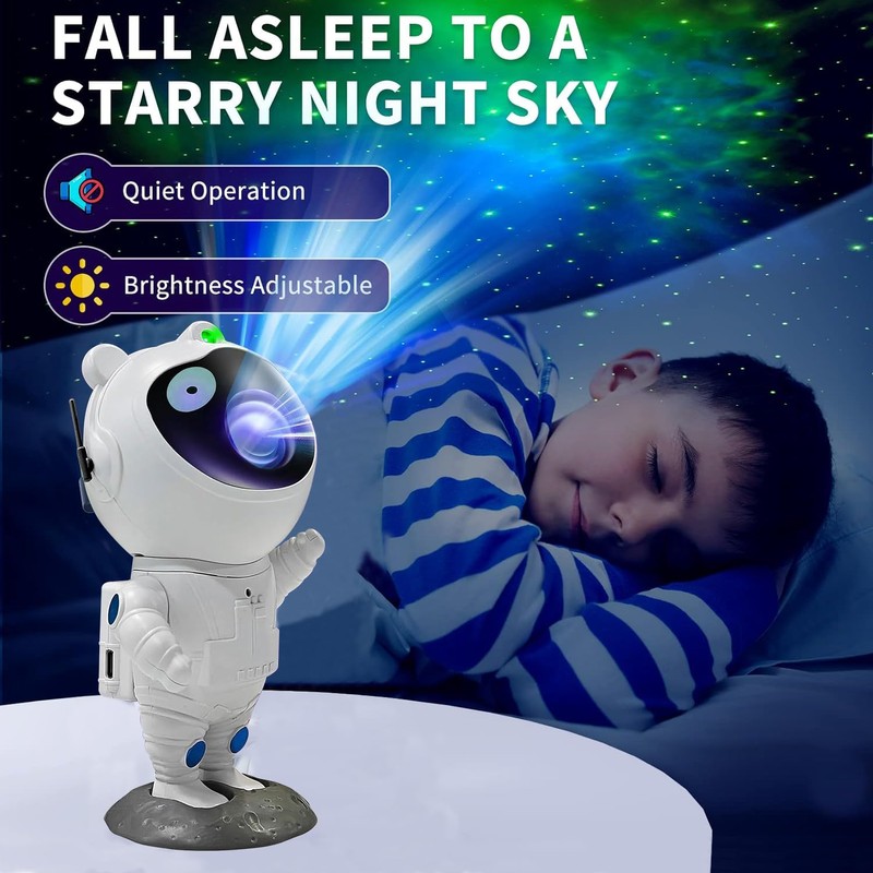 - ✨[Best Night Light and Gift Idea] This astronaut starlight projector is a very cool night light for kids, helping them fall asleep faster. Use this light to amuse your baby, very relaxing; perfect for your child's birthday and camp theme parties. Also a great gift choice for holidays (Christmas, Valentine's Day, Children's Day, etc.) and birthdays.