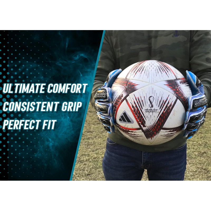 • 【ULTIMATE COMFORT, DURABILITY & PROTECTION】 Premium Designed Adhawk Goalkeeper Gloves are durable and flexible which aid you when it matters the most while providing finger and wrist protection. Our goalkeeping glove provides you with comfort and assist you in playing for the full 90 minutes without any distractions. As a goalkeeper you have to throw yourself in front of every shot, your team’s fate is often in your hands.