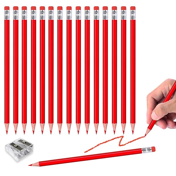 Adhere 25 Colored Pencils, Check, Advertising, Erasable, Sharpened #2 HB, with Eraser, Free Pencil Sharpener (Red)